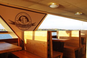 Также тут имеется ресторан, где можно поесть. Пассажиры могут выбрать сырную, овощную нарезки, пиццу, салат, холодные закуски, мороженое, горячие деликатесы, фрукты, некоторые виды мороженого. Но «изюминкой» меню является сушёная рыба. А ещё кафе «Поплавок» славится пивом собственного приготовления, которое подают в полулитровых кружках. Также можно выбрать порцию в 0,3 л. Также пассажирам доступны кофе и водка.
